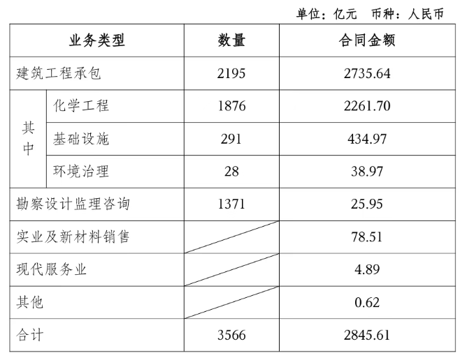 近日,中国化学工程股份有限公司将其1~9月主要经营情况公布如下:1~9月,中国化学总签约项目数量合计达到3566,累计合同金额合计达到2845.61亿元。