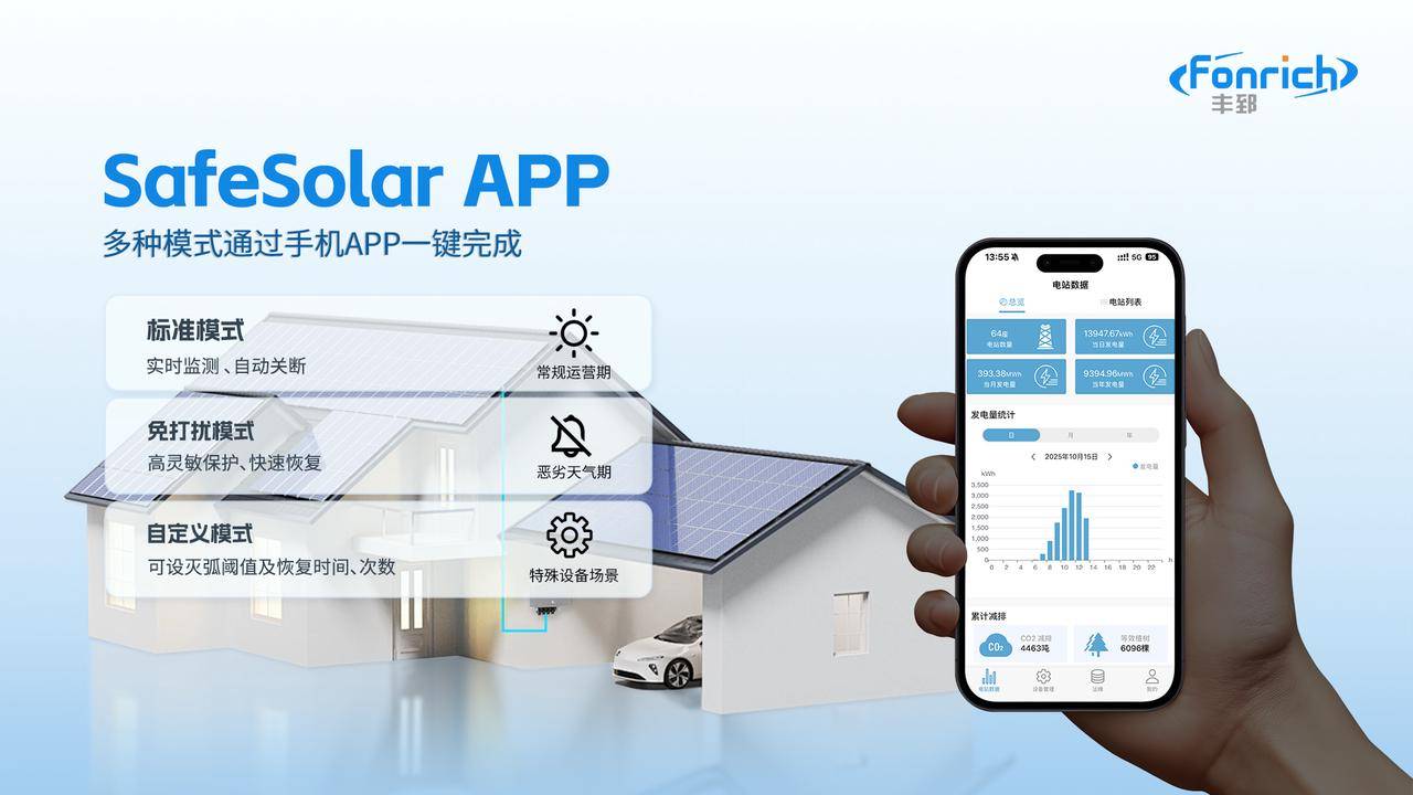 丰郅新能源的屋顶电站电弧保护方案,通过手机APP即可一键切换多种模式,为不同工况提供定制化解决方案,带来三大核心突破: