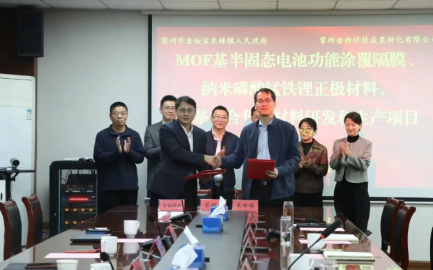 10月25日,MOF基半固态电池功能涂覆隔膜项目、纳米磷酸锰铁锂正极材料项目、磷基复合负极材料研发和生产项目同日签约,三个项目均落户朱林镇金西科技二期。这三个创新项目将在金坛进行成果转化和中试熟化,进一步推动常州市新能源、新型材料产业向价值链高端迈进。