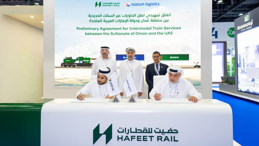 诺亚坦物流公司与哈菲特铁路公司在阿布扎比全球铁路展览会上签署初步协议,计划开通连接阿联酋阿布扎比与阿曼苏哈尔的铁路货运服务。这项跨境铁路货运服务将建立阿联酋与阿曼之间的专用货运通道,标志着两国铁路联通取得新进展。