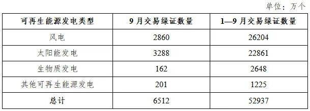 2025年9月,全国交易绿证6512万个,其中绿色电力交易绿证2102万个。2025年1~9月,全国交易绿证5.29亿个,其中绿色电力交易绿证1.79亿个。