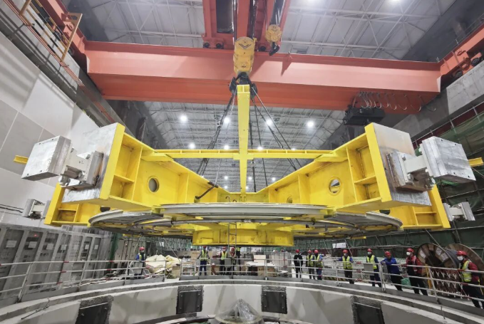 11月3日,由机电安装分局承建的易县抽水蓄能电站2号机组上机架顺利吊装就位。此举标志着2号机组大型部件吊装工作已全部完成,机组正式进入总装收尾阶段,向实现投产发电目标迈出了关键一步。