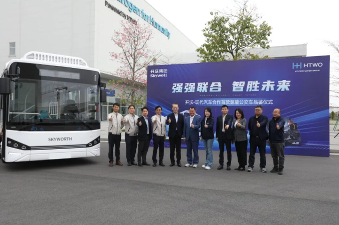 11月3日,开沃与现代汽车在现代汽车氢燃料电池系统(广州)有限公司(以下简称“HTWO广州“)举行双方合作开发的首款氢能公交车品鉴仪式,作为双方深化合作的重要成果,该车型不仅填补了行业技术空白,更将为广州市乃至全国氢能公共交通领域注入新动能,推动氢能交通生态完善。创维集团、开沃集团创始人黄宏生,开沃集团联合创始人、总经理诸萍,开沃集团副总裁、商用车事业部营销中心总经理陈治军;现代汽车集团中国区总裁李赫埈,中国氢能与商用事业总裁、HTWO广州总经理崔斗河,中国区商用车&氢能企划室长严晶焕,HTWO广州副总经理金寅基,现代汽车中国氢能研发中心主任河景九,HTWO广州副总经理张原硕,以及开沃和现代汽车相关人员出席仪式。作为品鉴仪式的重要环节,该氢能公交车的试乘活动也一并开展,并受到一致肯定和好评。