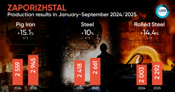 2025年1月至10月,扎波罗热钢铁公司轧钢产量成绩亮眼,较2024年同期增长14.4%,达到229.2万吨,这一数据由GMK中心依据该公司数据计算得出。同期,生铁冶炼量为294.5万吨,同比增长15.1%;钢铁产量达266.1万吨,同比增长10%。