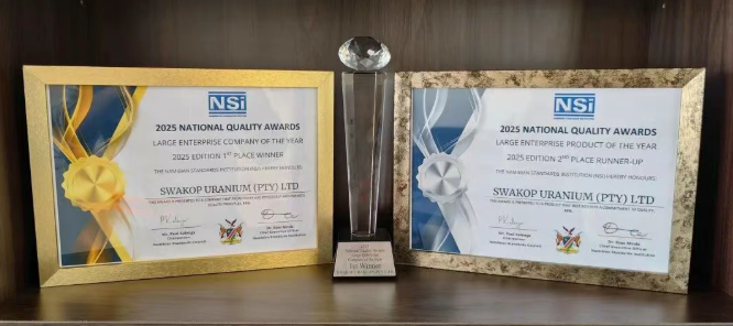 在第56个“世界标准日”当天,中广核铀业斯科有限公司(以下简称“斯科公司”)荣获纳米比亚2025年度国家质量奖。
