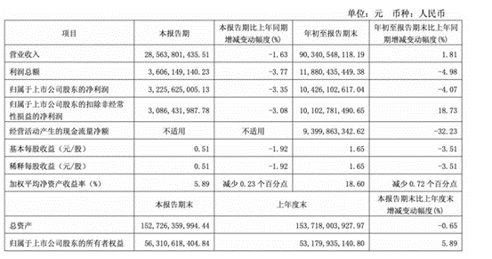 今年前三季度,公司实现营收为 903.41 亿元,同比增长 1.81%;归母净利润为 104.26 亿元,同比减少 4.07%。