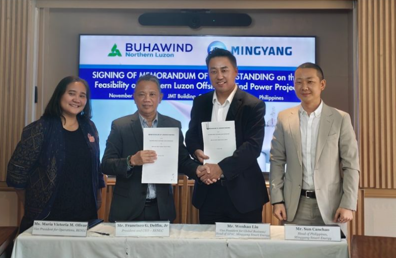 中国明阳智慧能源集团与菲律宾布哈风能北吕宋公司(BENLC)签署谅解备忘录,将就计划在菲律宾建设的2吉瓦海上风电项目开展联合可行性研究。