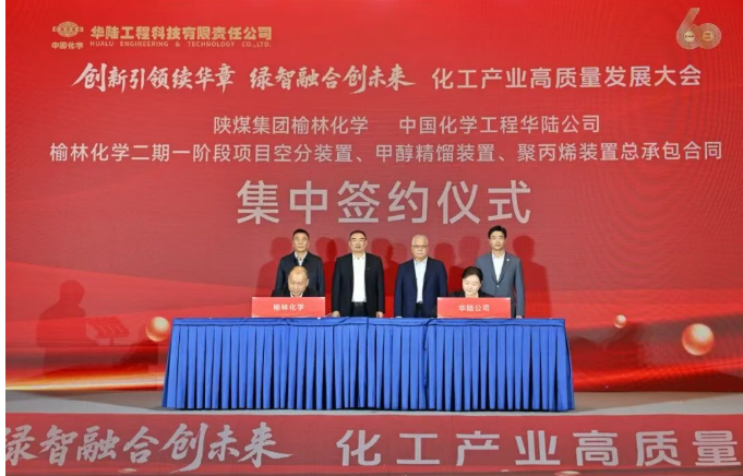 近日,中国化学工程华陆公司与陕煤集团榆林化学公司签订1500万吨/年煤炭分质清洁高效转化示范项目二期一阶段空分装置、甲醇精馏装置、聚丙烯装置EPC总承包合同。