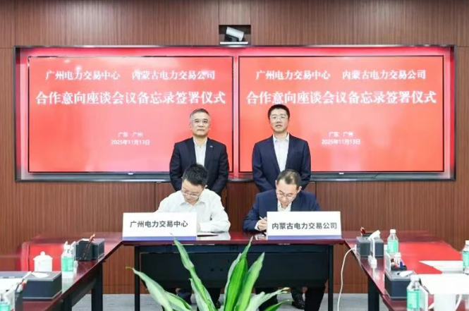 在粤期间,张晓虎一行分别到南方电网数研院、产业发展集团、能源研究院、综合能源公司、广东电网公司、广州电力交易中心、国家新型储能创新中心,就能源政策研究、电网规划建设、电力交易外送、生产智能运检、新兴产业发展及新型储能、零碳园区、虚拟电厂、数智转型等方面,与南方电网有关单位座谈交流并实地调研。内蒙古电力交易公司与广州电力交易中心就绿电绿证跨区交易、市场体系建设研究、干部人才培养锻炼签署合作备忘录;内蒙古电力经研院与广东电网规划研究中心签署“柔性直流技术”合作协议。