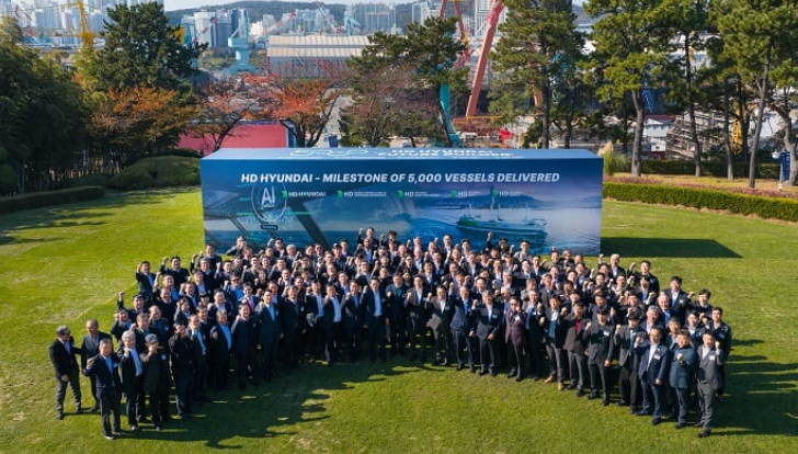 韩国HD现代集团近日宣布完成第5000艘船舶的建造与交付,成为全球首家达到这一规模的造船企业。2025年11月19日,该集团在蔚山举行仪式,庆祝自1974年交付首艘船舶以来历经半世纪发展的重要成就。