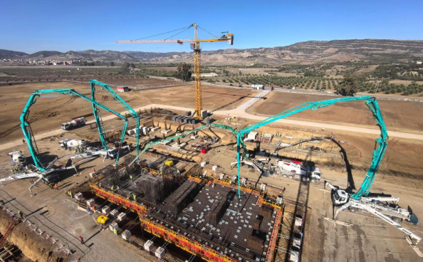 这座摩洛哥最大燃机项目位于丹吉尔胡塞马大区,计划建设两台H级燃气发电机组。本次浇筑的燃机筏板长39.13米,宽14.95米,高3.8米,施工采用四台泵车同步作业,累计浇筑混凝土1875立方米。作为摩洛哥在建规模最大的燃气发电项目,其工程进展对当地能源体系建设具有重要意义。