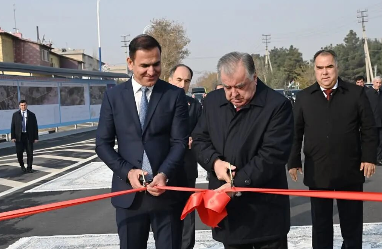 近日,塔吉克斯坦总统埃莫马利·拉赫蒙出席中铁五局承建的中亚道路连接线四期项目2-4标段主体工程完工仪式并剪彩。
