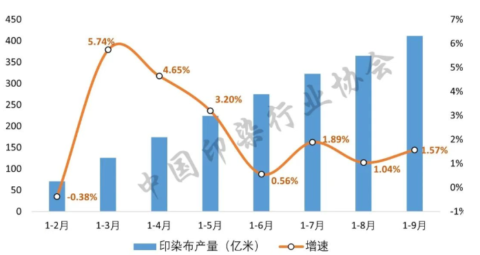 图1 2025年前三季度中国印染行业规模以上企业印染布产量及增速