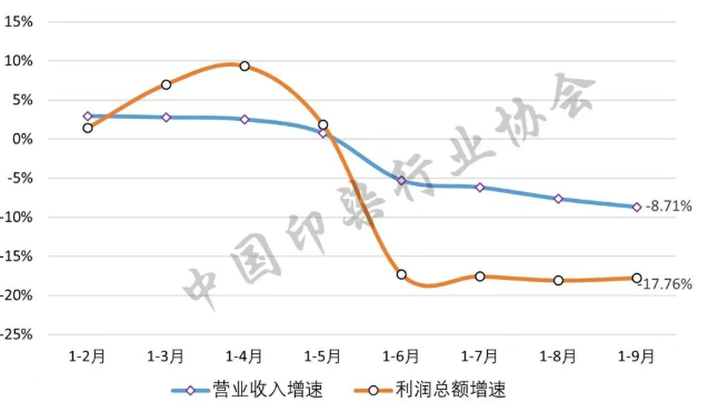 图3 2025年前三季度中国印染行业规模以上企业营业收入和利润总额增速情况