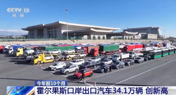今年以来,位于新疆伊犁的霍尔果斯口岸汽车出口进入高峰,每天都有600余辆汽车在霍尔果斯海关办理完通关手续后,由霍尔果斯口岸驶往哈萨克斯坦、乌兹别克斯坦等“一带一路”共建国家。作为全国最大的汽车出口陆路口岸,霍尔果斯口岸汽车出口呈现出迅猛增长的态势。据海关统计,2025年1—10月霍尔果斯口岸出口汽车34.1万辆,同比增长3.2%,创历史新高。其中,出口电动汽车14.1万辆,同比增长44.7%,电动汽车是中亚五国及俄罗斯等地广受欢迎的热门车型。