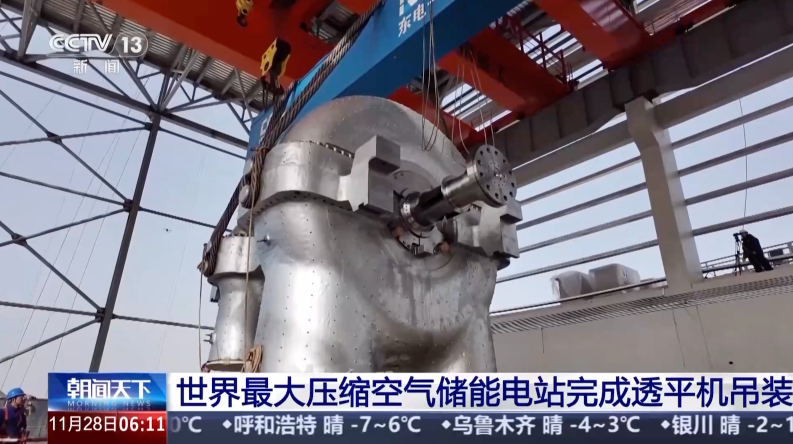 此次吊装的涡轮机组被称为压缩空气储能电站的关键设备,从启动至满负荷运行仅需约十分钟,可实现电网负荷的快速调节。该机组所有核心部件均实现国内制造,具备国内同类设备中最高的单机输出功率和进气量水平。