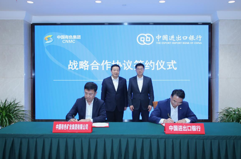 近日,中国有色矿业集团有限公司(以下简称“中国有色集团”)与中国进出口银行在京举行战略合作协议签约仪式。中国进出口银行党委书记、董事长陈怀宇,中国有色集团党委书记、董事长文岗现场见证签约。中国进出口银行党委委员、副行长王康,中国有色集团党委委员、总会计师安宜代表双方签约。中国有色集团党委委员、副总经理刘宇参加签约仪式。
