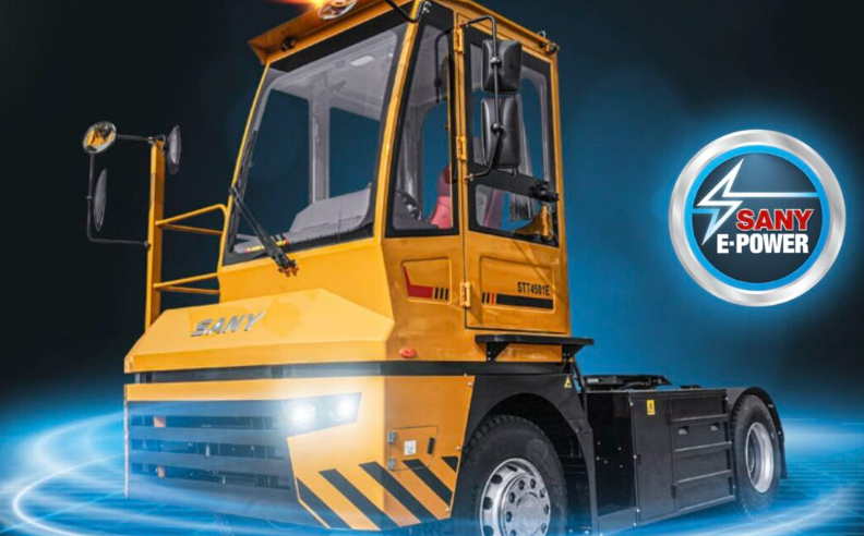 中国工程机械制造商三一重工近日发布了一款新型全电动码头牵引车STT4501E2-D。