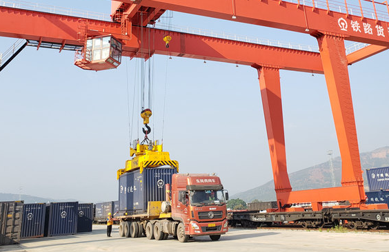 货运强劲增长,促进“物畅其流”。中老铁路在中国和东盟间构建起一条便捷国际物流大通道,运输时间和物流成本大幅压缩,运输需求十分旺盛。中老两国铁路部门加强货物运输组织,提升运输能力和效率,跨境货物列车每日开行数量由开通初期的2列增至到最高23列,列车牵引吨数由2000吨增至2800吨,累计发送跨境货物超1600万吨,已覆盖国内31个省(区、市)和老挝、泰国、马来西亚、新加坡、越南等19个国家和地区,跨境运输商品种类拓展到3800余种。打造中老铁路中亚班列品牌,铺画了3条时速120公里和8条时速80公里图定中亚班列运行线,通过共线运行、满编组织等方式,充分利用中老铁路运输能力,持续提升冷链等特色货源班列开行质量,促进跨境货运量稳步增长,并通过重庆、成都等地中欧班列快速中转,老挝、泰国等国家至欧洲铁路运输时间缩短至15天,东南亚国家的榴莲、山竹、啤酒等时令水果和特色产品能快捷抵达中国和欧洲市场。打造磨憨铁路口岸智慧货场,货物通关时间从开通初期的40小时大幅压缩至2至5小时,通关效能大幅提升;万象南换装场建成投用并常态化运营,中老铁路顺利实现与泰国、马来西亚等铁路网互联互通,截至2025年11月,中老铁路中亚班列累计开行超过1.2万列,发送货物超过65.3万标箱。