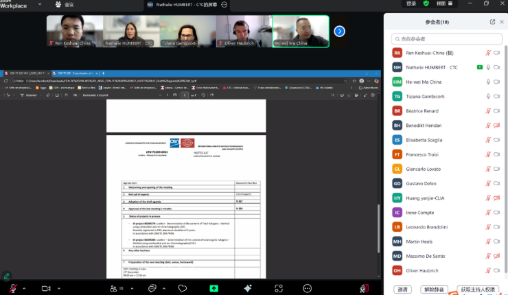 11月27日至28日,皮革领域国际标准化组织国际皮革工艺师和化学家协会联合会(IULTCS)与欧洲标准化组织“皮革”技术委员会(CEN/TC 289)联合标准化会议以网络视频会议形式召开,来自法国、德国、意大利、西班牙、英国、中国等6个国家共计50余人参加本次系列会议。中国皮革制鞋研究院和全国皮革工业标准化技术委员会作为IULTCS国内技术对口单位和国内技术对口TC,组织相关专家作为中方代表积极参加了本次系列会议。