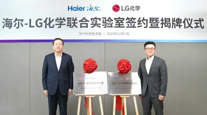 12月1日,LG化学宣布与海尔智家股份有限公司(以下简称“海尔智家”)达成战略合作并成立联合实验室,旨在加强新产品开发与技术合作,为用户提供智能家电创新产品解决方案。LG化学ABS事业部部长Steven Kim、海尔智家副总裁李洋等出席了签约暨揭牌仪式。