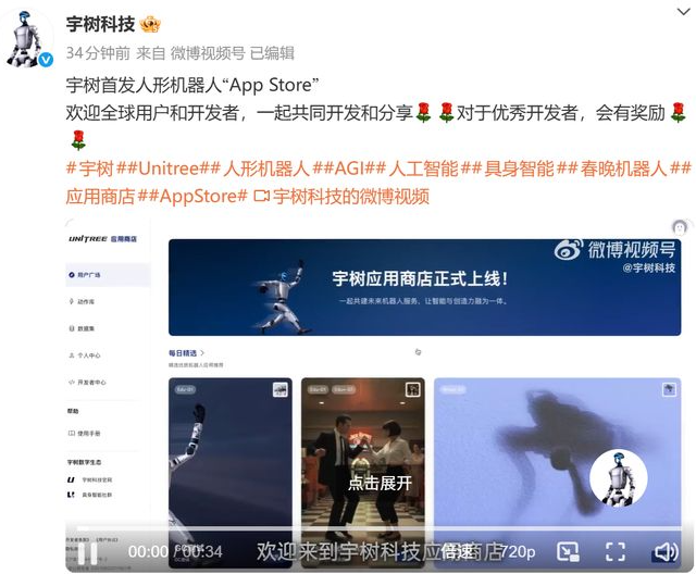 宇树科技发布人形机器人“App Store”
