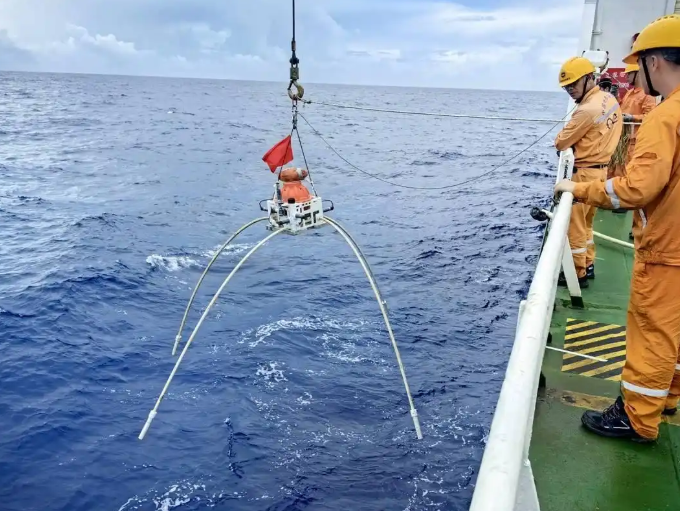 科考人员布放自主研发的全海深电磁采集站。图据受访者