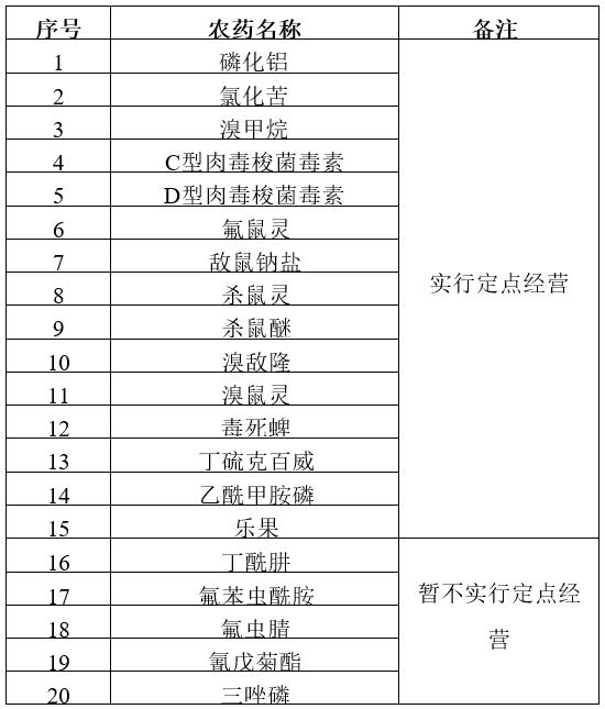 根据拟修改的《限制使用农药名录》征求意见稿,名录中前15种农药将实行定点经营管理,其他农药暂不纳入定点经营范畴。同时,列入名录农药品种的卫生用农药将不按限制使用农药进行管理。该征求意见稿规定,列入名录的农药产品,其标签需标注“限制使用”字样,并根据相关规定注明特别的使用限制和特殊要求。