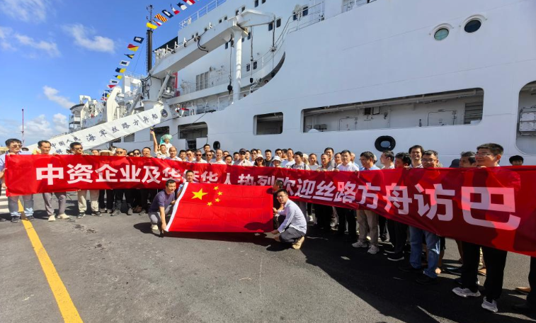 当地时间上午10时,“丝路方舟”号医院船缓缓抵达布里奇敦港,巴巴多斯相关军政官员及中国驻巴巴多斯大使馆工作人员,华人华侨、中资机构代表等在码头迎接。