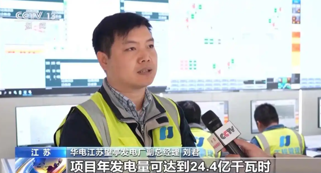 华电江苏望亭发电厂副厂长 刘君:5号机组投产后,项目年发电量可达到24.4亿千瓦时,能满足230万居民一年用电需求,每年可节约标煤20万吨,减排二氧化碳约90万吨。为江苏地区今冬明春电力保供提供清洁能源保障。