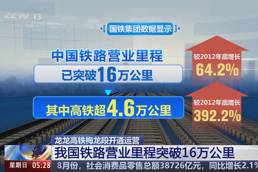 “十四五”时期,国铁集团以中国“十四五”规划纲要确定的102项重大工程铁路项目和“两重”项目为重点,加大实施力度,长赣高铁等8个项目开工建设,沈白高铁等25个项目开通运营。中国铁路营业里程由14.63万公里增至16.5万公里、增长12.8%,高铁由3.79万公里增至5.04万公里、增长32.98%。
