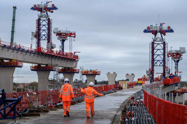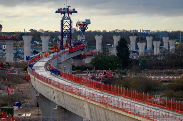 这两座单线高架桥建成后将延伸约1.4公里,跨越多条铁路、河流、道路及高速公路,是桥梁工程中的重点。它们采用预制节段悬臂法建造,混凝土节段逐跨安装,并通过永久性钢索后张拉固定。总共32座混凝土桥墩支撑这些结构,最高达20米,采用现场浇筑方式,使用本地制造的定制模板和钢筋笼。三角洲立交桥所需的全部2742个预制构件均在利马斯顿的临时工厂生产,为桥梁工程提供了坚实保障。
