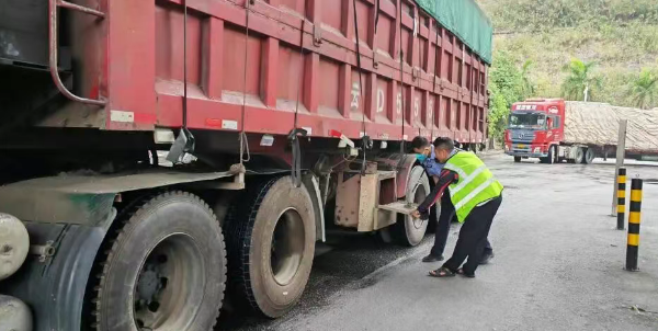 一辆挂山东牌照、满载货物的货车正在接受检查。货车驾驶员说,他经常往返中越两国,主要运输农产品和化肥等货物。“现在网上报关方便,手续齐全,检查高效,不到10分钟就检查完。”这名驾驶员说。