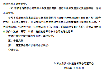 此外中国九鼎新材在公告中表示:该项目是基于公司现有业务发展的需要,但行业未来发展变化及趋势存在一定的不确定性。