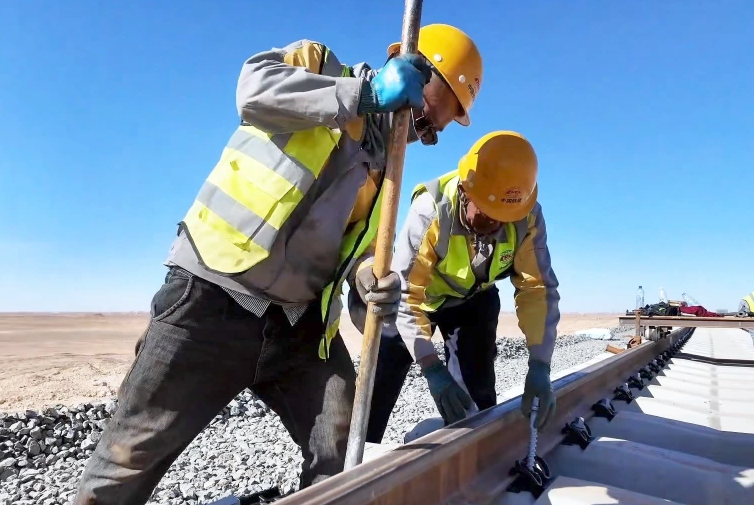 中国铁建与阿尔及利亚建设者历时24个月,在复杂多变的撒哈拉沙漠自然环境下科学组织施工,深化中阿团队协同,高效推进项目,较原计划提前3个月实现轨道铺通,累计完成轨枕生产110万根,铺焊轨580公里。
