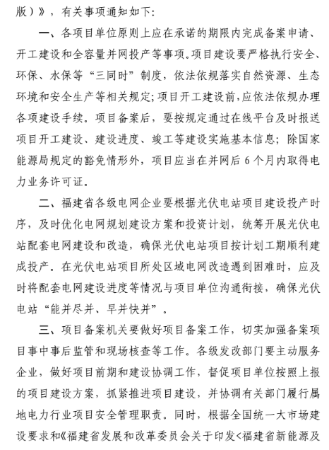 维度网讯,近日,福建省发展和改革委员会发布《关于公布光伏电站开发建设项目清单的通知》。