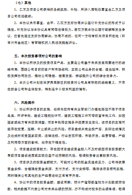 根据公告显示,中国龙蟠科技的控股子公司常州锂源新能源科技有限公司(以下简称“常州锂源”)拟与江苏省金坛华罗庚高新技术产业开发区管理委员会(以下简称“华罗庚高新区管委会”)签署《高性能锂电池正极材料项目合作协议》及《高性能锂电池正极材料项目合作补充协议》。