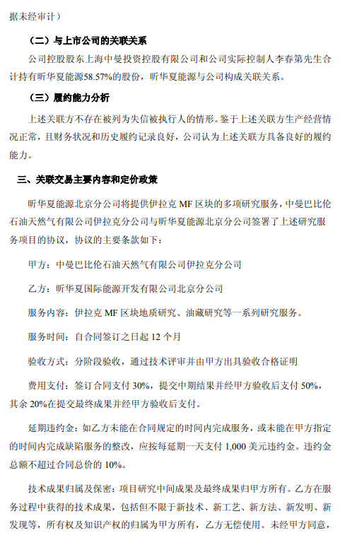 2025年12月30日,中曼巴比伦石油天然气有限公司伊拉克分公司与昕华夏能源北京分公司签署了上述研究服务项目的协议。