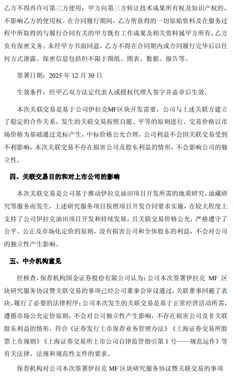 维度网讯,近日中国中曼石油发布《关于签署伊拉克MF区块研究服务协议暨关联交易的公告》。