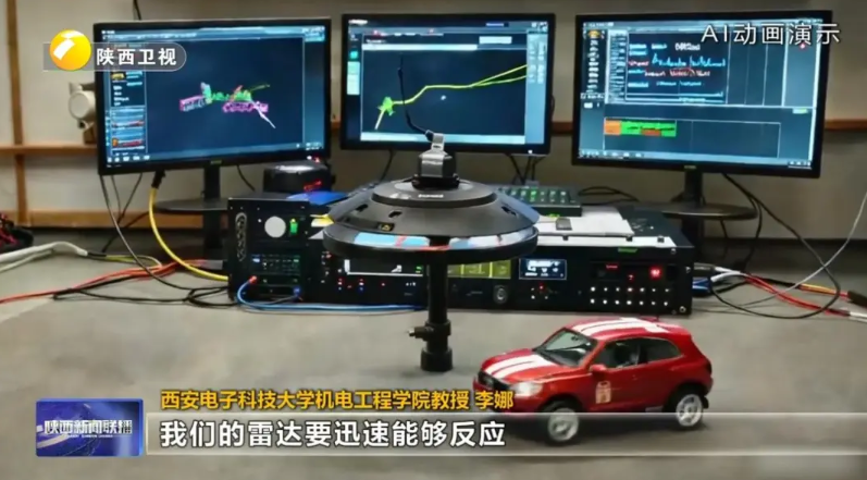西安电子科技大学机电工程学院教授李娜:智能驾驶汽车出现在我们雷达的接收和辐射范围内之后,雷达要能够及时地跟踪它,然后当这个小车发生转向,它的运动状态变化的时候,我们的雷达要能够迅速地反应。