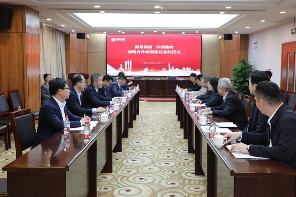 1月16日,中国港湾与南粤集团有限公司在广州签署战略合作框架协议。中国港湾党委书记、董事长白银战与南粤集团党委书记、董事长、总经理赵春晓出席签约仪式,并就深化合作开展深入交流。