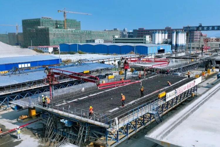 中国中铁广州工程局消息:1月16日晚上,随着最后一方混凝土精准入模,中铁广州工程局集团承建的珠肇高铁5标鹤山制梁场圆满完成全部箱梁预制任务,为后续架梁施工高效推进奠定坚实基础。