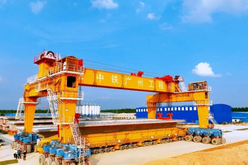 此外,梁场配备的2台HZS240搅拌机和MGLT1000T搬梁机,进一步保障了生产质量与效率。搅拌站依托智能控制系统实现自动配料、精准计量与远程监控;搬梁机则可按预设程序完成箱梁起吊、转运与存放,大幅提升了作业安全性与整体工效,为高效完成珠肇高铁全部箱梁预制任务提供了保障。