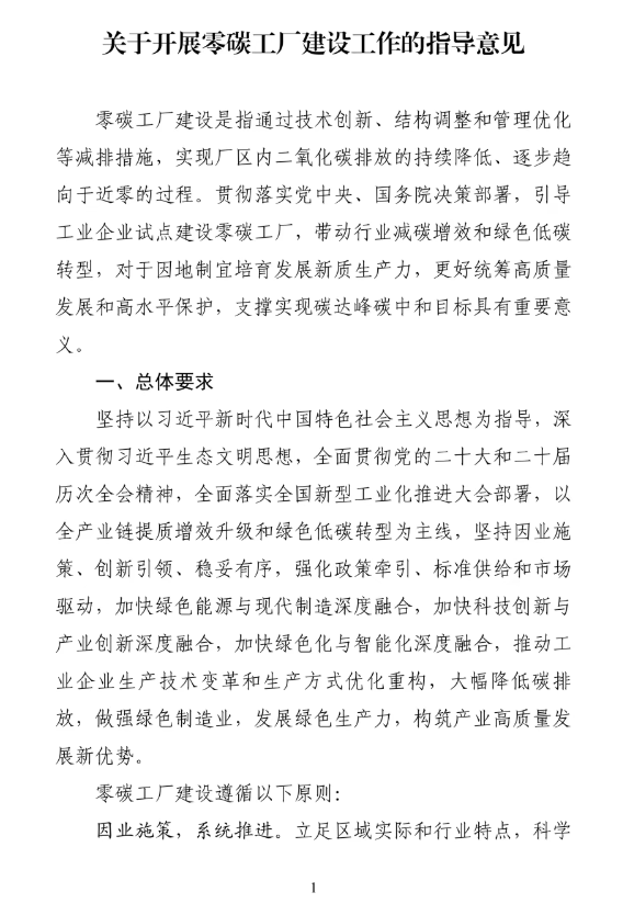 关于开展零碳工厂建设工作的指导意见