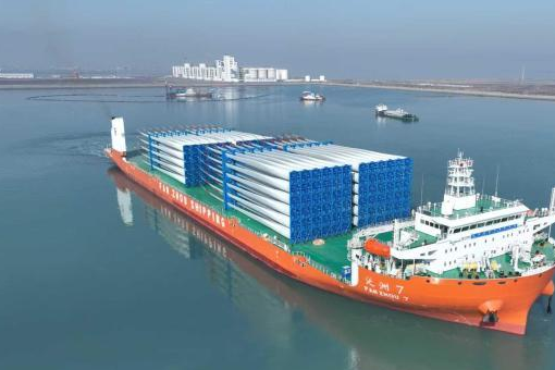 近日,在南通海事局的全程监管维护下,目前世界最大外贸甲板运输船“泛洲7”轮装载132片风电叶片,从启东吕四通洋码头开启交付后的首航,远赴中国海外。