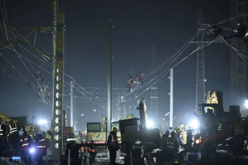 成都建设指挥部副指挥长邓蜀昌介绍,施工涉及成都站东咽喉、八里站西咽喉、八里站东咽喉及客机整备所等4个作业面,共有20余家单位参与,共投入近千名作业人员、百余台机械设备,完成了成渝铁路总计643米的线路拨接与整修,启用新线路3.2公里、新道岔16组,并同步实施了八里站信号系统倒替等改造工作。施工时间自1月15日22时30分开始,至16日4时结束,历时5小时30分钟。