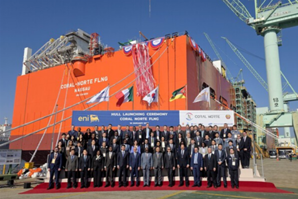 三星重工代表理事崔成安、莫桑比克矿产资源和能源部部长埃斯特旺·托马斯·拉斐尔·帕莱(Estêvão Tomas Rafael Pale),以及ENI集团、日本燃油工程公司日挥(JGC)高管等船东及合作企业代表出席下水仪式。