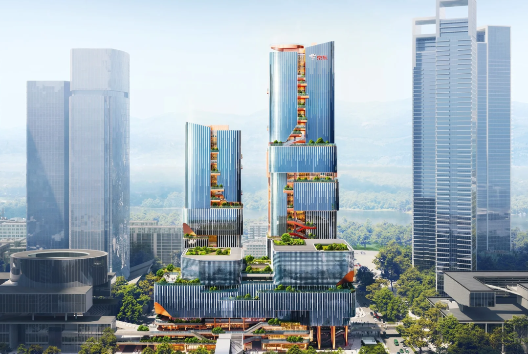 “画境之城”地标大楼本身也是京东在深圳的总部所在,项目总投资超过31亿元,总用地面积29,745.07平方米,总建筑面积约24万平方米,由两栋超高层塔楼(200米和149米)、一栋60米商业办公楼及地下空间组成。