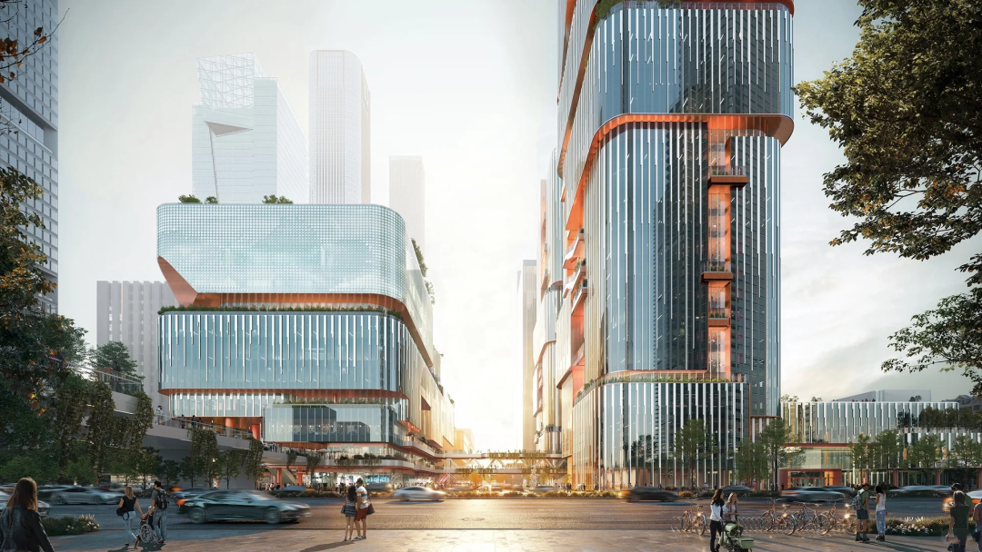 建筑师奥雷·舍人从中国传统山水美学与岭南地域文化中汲取灵感,提出“居间空间”(in-between space)的概念,强调建筑之间的开放场域同样承载着城市生活的活力。 设计通过一条蜿蜒的社交中轴贯穿建筑群,将自然景观转化为立体的行走体验,同时融入骑楼、阳台等岭南元素,并通过绿色设计适应本地气候,营造宜人的微环境。