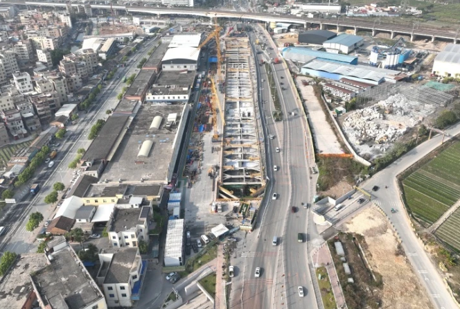 神山东站施工面临复杂地质条件挑战。该区域地层包含填土、砂层、粘土及风化岩,岩溶见洞率高达86.2%,并分布有厚度超过14.4米的富水砂层,且地下水位较高。为确保施工安全,广州地铁联合中电建水电十四局、深圳市政院等参建单位进行技术攻关。地铁建设者提前探明溶洞情况,采用“双液浆封边结合单液浆填充”的工艺进行加固。在基坑开挖前,于地下连续墙接缝处施作旋喷桩止水帷幕,以保障止水效果。